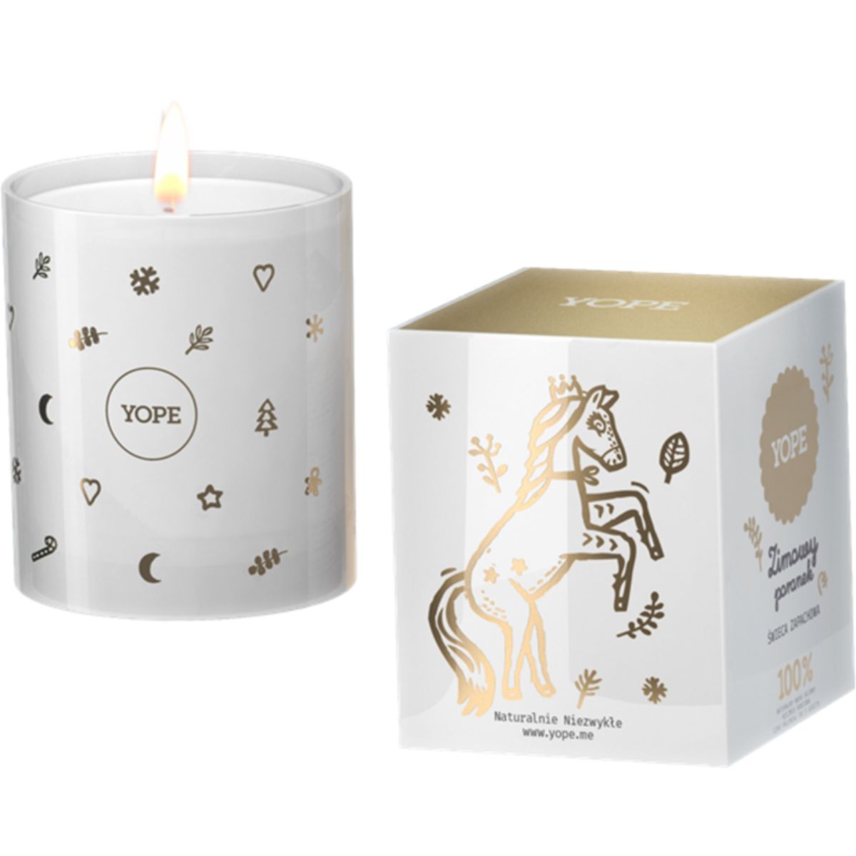 La candela profumata Winter Morning emana una delicata fragranza invernale con note di vaniglia, caramello e cannella. È realizzata al 100% in cera di soia, che le consente di bruciare più a lungo. La cera liquida non si riscalda e la candela emette solo una quantità minima di fumo e anidride carbonica.