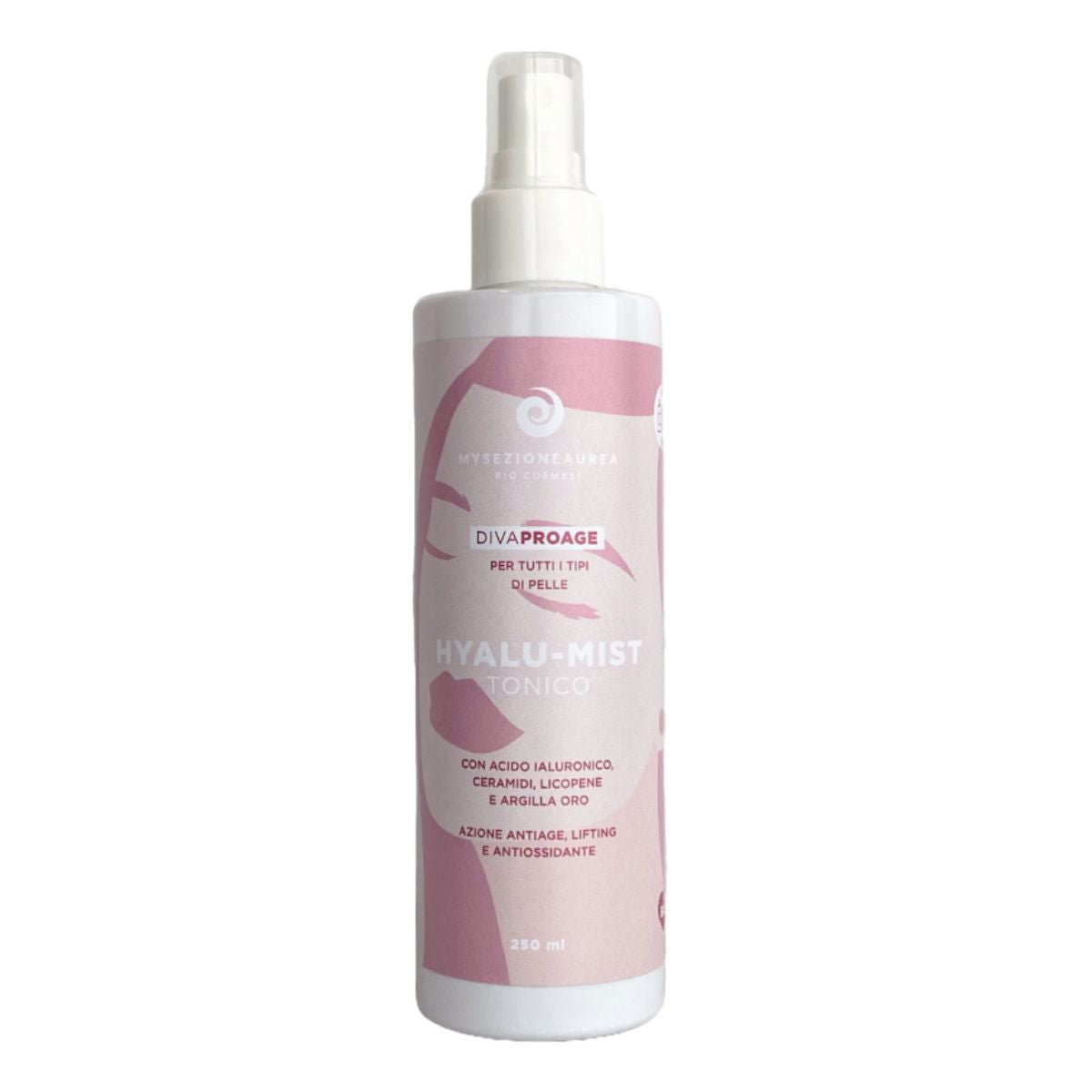 TONICO HYALU-MIST DIVA PRO AGE con acido ialuronico, ceramidi, licopene e argilla oro ad azione antiage, lifting e antiossidante